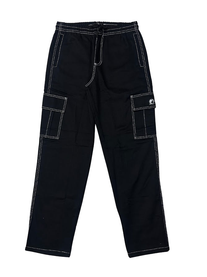 Calça Cargo Linha Branca Reta Sarja Preta